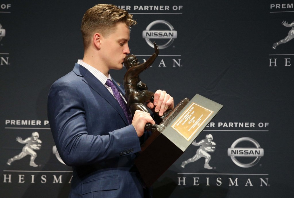 Burrow transferred last year to LSU from Ohio State, where he was a sparingly used reserve. After finishing strong for the Tigers in 2018, he broke out this season, setting a Southeastern Conference record with 48 touchdown passes and leading top-ranked LSU (13-0) to its first College Football Playoff appearance.