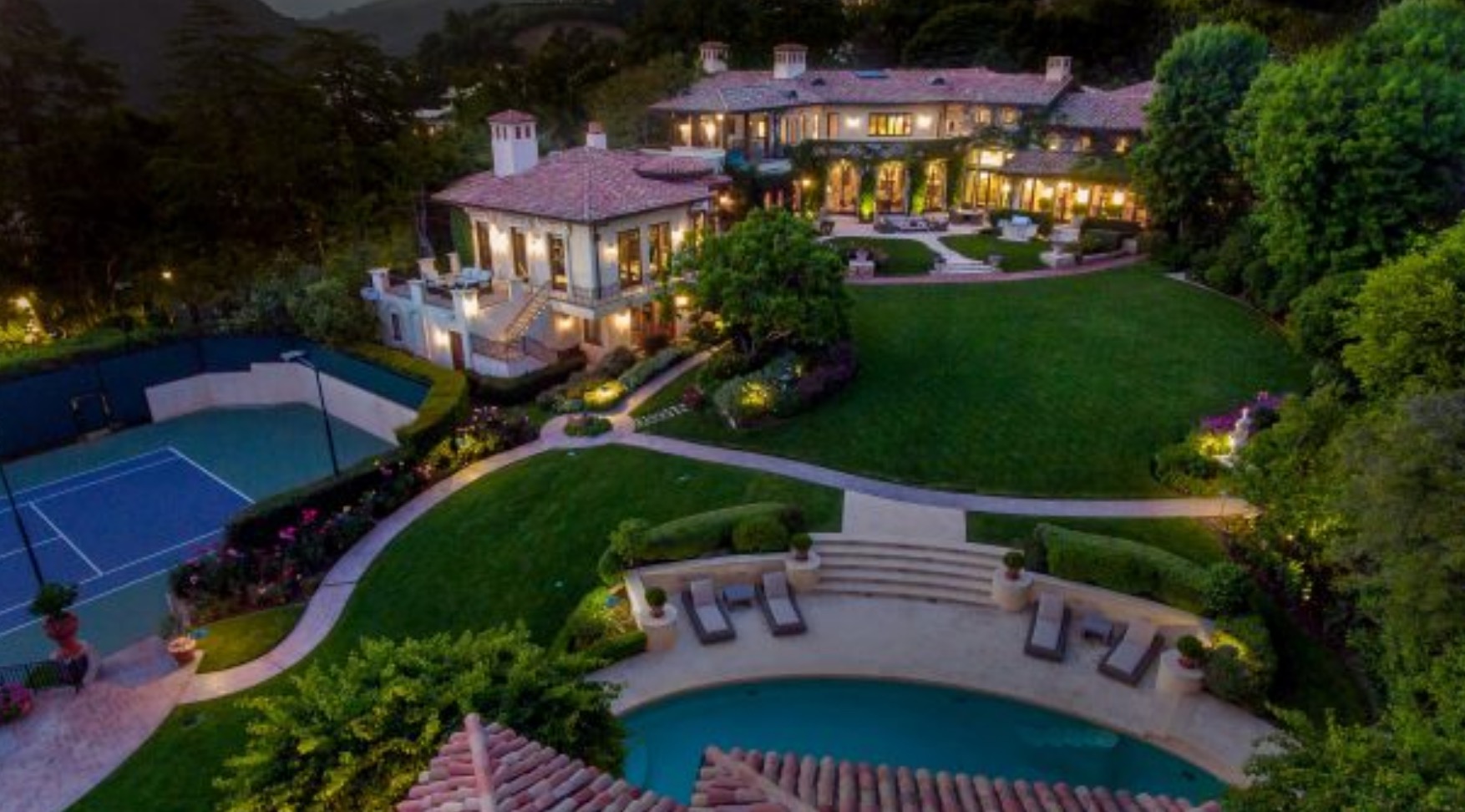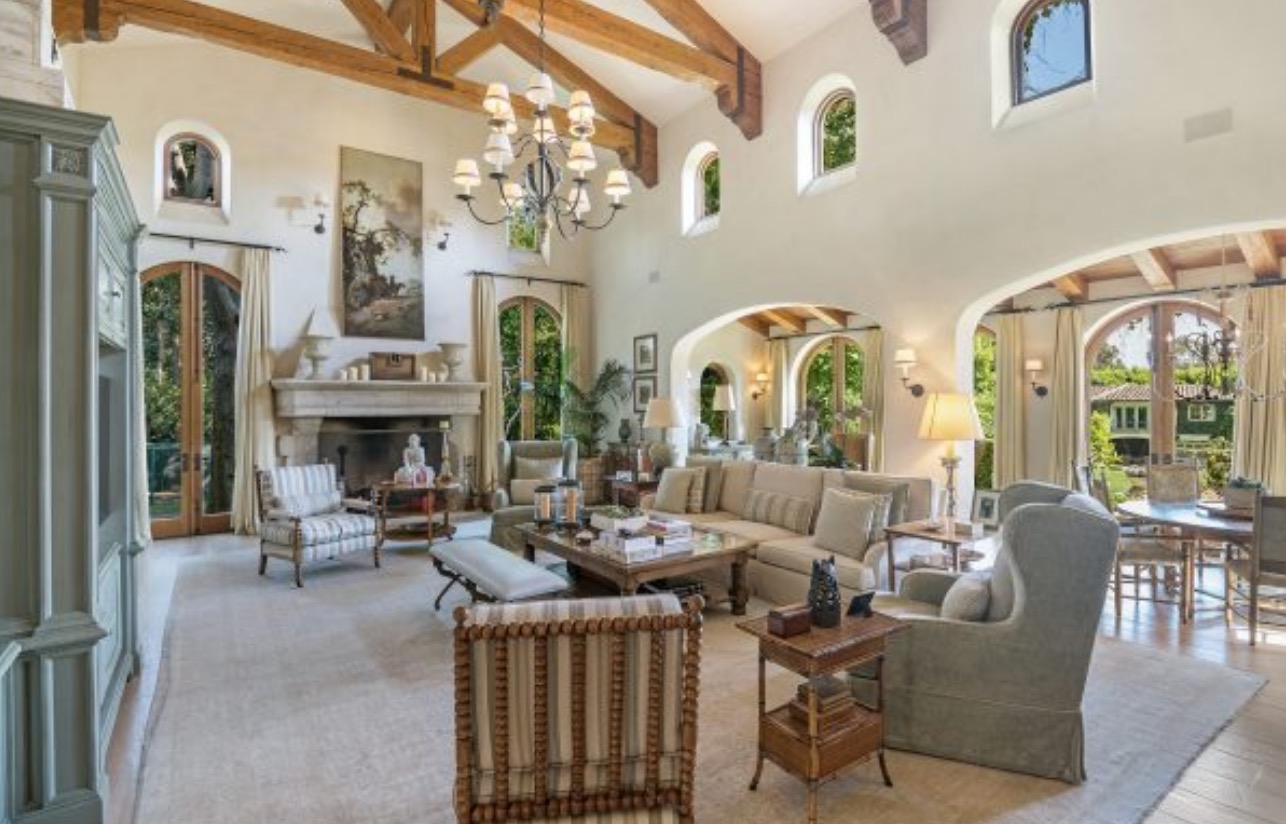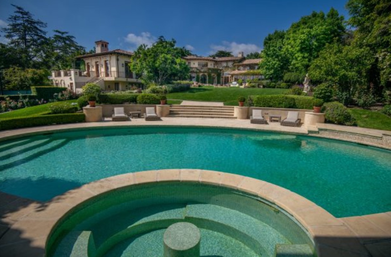 Located in the prime Palisades Riviera on one of the most coveted streets, this breathtaking Italian villa is perched on just under 2 acres of expansive park-like grounds.