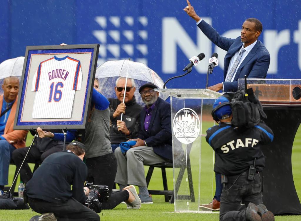 During his brief speech prior to Sunday’s game during an ill-timed rain shower, Gooden said he called the Mets following his two-year stint with the Yankees, which elicited a round of boos from the crowd.