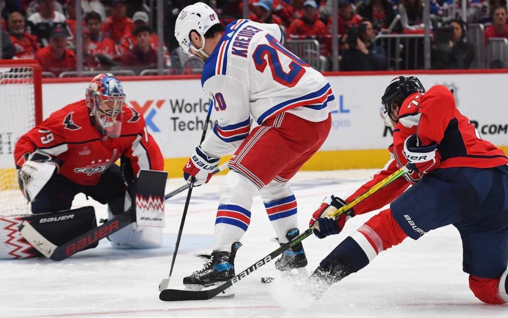 Kaapo Kakko, Vincent Trocheck and Jack Roslovic scored for the Rangers, who are the No. 1 seed from the Metropolitan Division. Mika Zibanejad had two assists, and Igor Shesterkin made 23 saves.