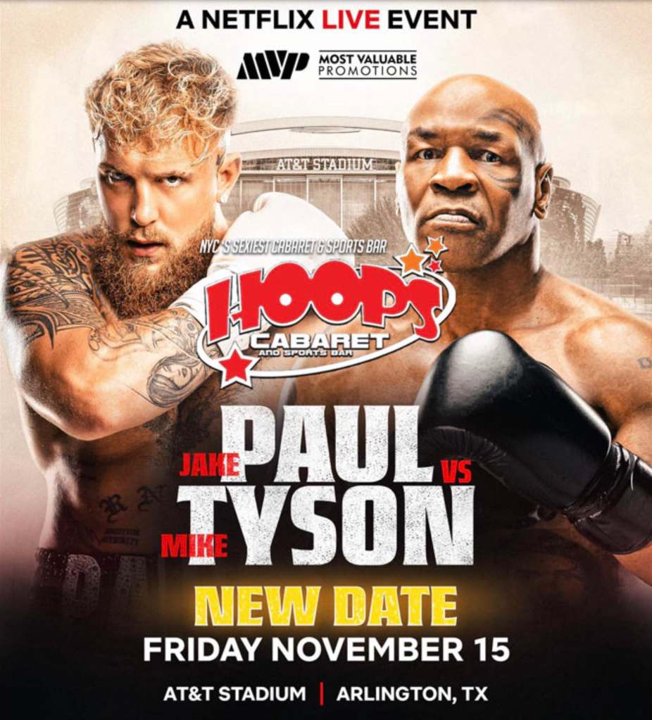You are invited to Hoops Cabaret New York, the sexiest sports bar, to watch a weekend of action. On Friday night, highly controversial Youtuber turned professional boxer Jake Paul steps into the ring to take on Mike Tyson, a former two-time World Heavyweight Boxing Champion.
