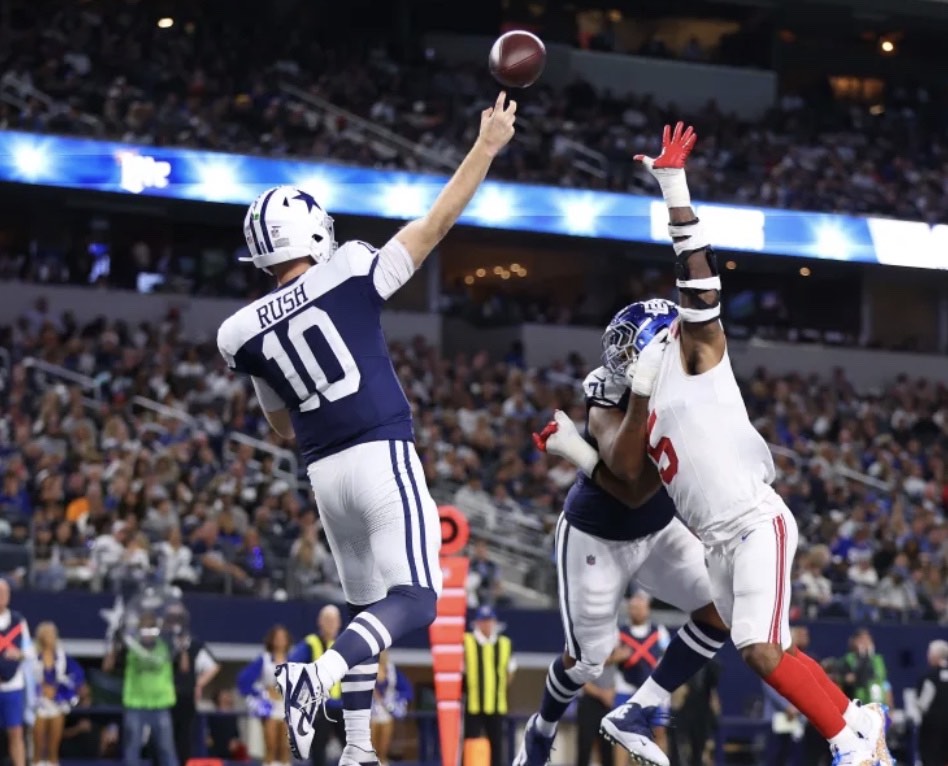 Dallas was in control for much of Thursday’s game. It took a 13-7 lead in the second quarter when it got a pick-six off a screen pass by New York and never looked back.