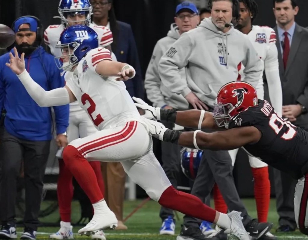 Falcons defensive end Matthew Judon picked a tipped pass by Drew Lock out of the air and returned it for a touchdown 40 seconds into the second half to give the Falcons a 24-7 lead. There was no conceivable way the Giants could overcome that d