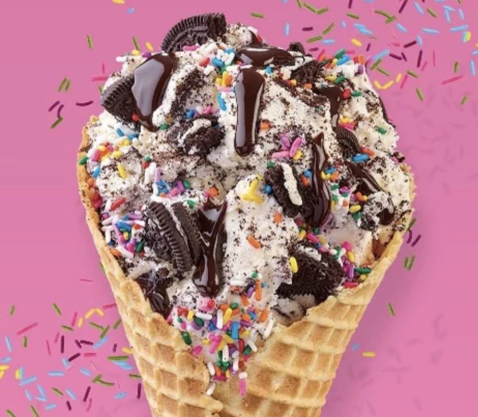 Cold Stone’s iconic Birthday Cake Remix is back to bring the joy of childhood celebrations. Dive into the creamy delight of Cake Batter Ice Cream adorned with vibrant rainbow sprinkles, chewy chunks of brownie, and rich fudge. Every bite is a festive celebration.