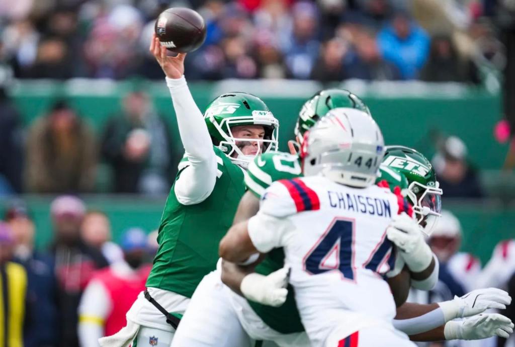 The Jets lost to the New England Patriots, 42-10, for their 13th loss of the season and their sixth loss in the last seven games.