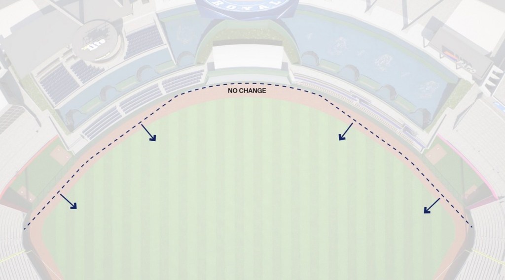 Kauffman Stadium is already considered to be an above-average offensive park because of its massive outfield, which promotes doubles and triples, but has suppressed home runs, which has led to hitters changing their approaches in road games. The Royals had previously moved their fences in 10 feet between 1995 and 2003, which saw a spike in home run totals, before returning to their original dimensions in 2004.